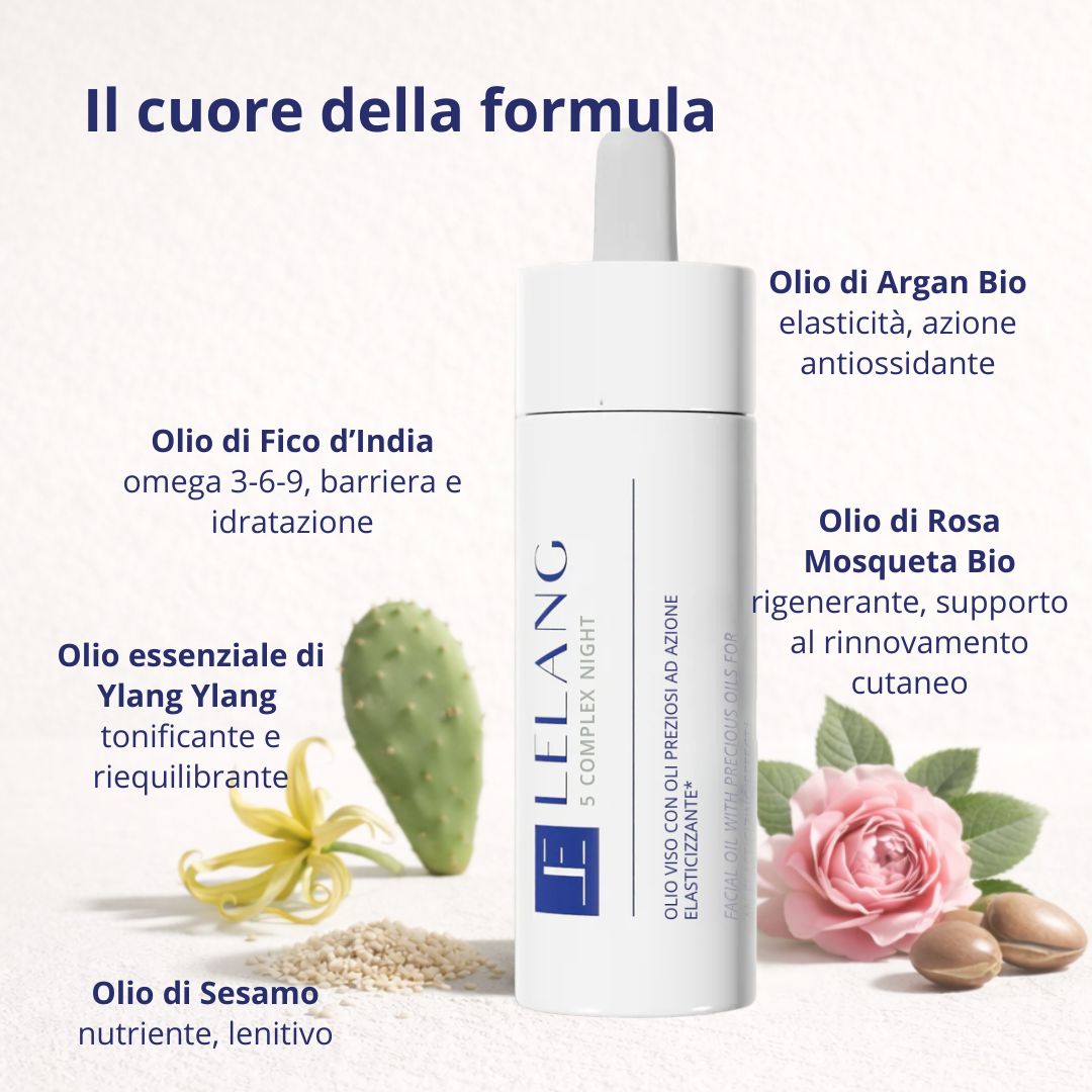 Sí, 5 Noche compleja se ha formulado seleccionando los aceites más ricos en ácidos grasos esenciales, Omega 3 6 9, Vitaminas E F, lo que lo hace adecuado para todo tipo de pieles, desde las más jóvenes hasta las más maduras, incluidas las más sensibles.