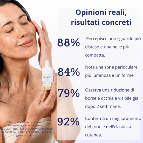 • Riduce visibilmente le borse e occhiaie